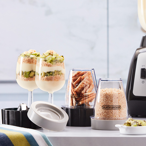 - Crea batidos y mezclas perfectas de una manera muy fácil y rápida con la Licuadora DuraPro de Black + Decker - 550 Watts de potencia máxima, 10 velocidades y Función de Pulso - 4 cuchillas de Acero Inoxidable para triturar hielo y alimentos duros - Jarra de vidrio con capacidad de 1.25 Litros - Tapa de doble abertura con boquilla vertedora para añadir ingredientes mientras la licuadora esta funcionando - 2 vasos mini (200ml) con cuchillas diseñadas para moler Ideal para preparar licuados con alto valor nutrimental, cremas, triturar cereales suaves, salsas y malteadas. La licuadora DuraPro de Black + Decker lo tiene todo para ayudarte desde el desayuno hasta la cena. Su Jarra de vidrio de 1.25 Litros no guarda olores ni sabores y su tapa de doble abertura está diseñada para verter fácilmente especias y líquidos.